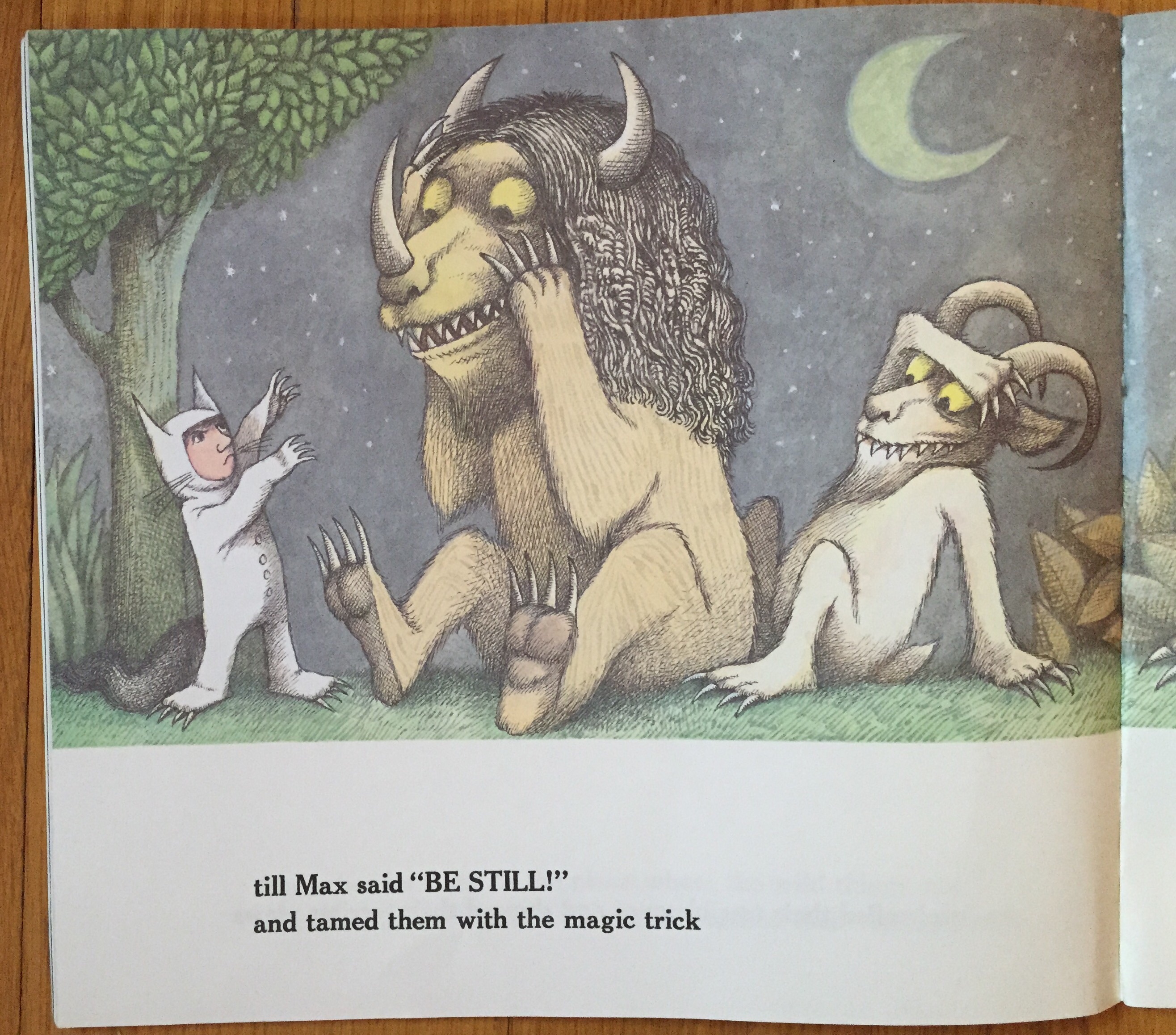 Last night, as we were reading one of our favorite books, Where the Wild Things Are (which is also the inspiration of the name of this blog), we got to this page and he said, “If I had that dream about all those monsters, I think it would be a bad dream.”